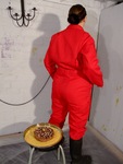 Something festive for the start of December, Wendy dons a scarlet boilersuit and black boots, and spemds a merry old time in the dungeon gradully reducing herself to a sticky mess!
