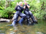 During the household's annual Scottish hunting trip, Lady Amaranth and Nurse Wendy-Household take a little time out to dress up in working outfits, and thoroughly drench each other, first with lots of cola, and then by frolicing neck-deep in the deeping pool, still wearing their cola-drenched clothes.