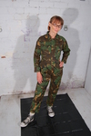 Wearing a lincoln green boilersuit, belt, and green ankle wellies,