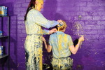 both girls are utterly drenched in mess from head to toe, shoes wrecked,