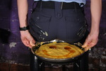 The main part of the demonstration will involve Honeysuckle's outfit being compehensively filled with custard and syrup, but to keep things fair, before the main demonstration starts, Miss Abigail invites Honeysuckle to drop slices of chocolate gateaus into Abigail's own shorts and shirt, where they can gradually melt and squish, on full view inside the see-through fabric, while she systematically destroys Honeysuckle with poured in goo.