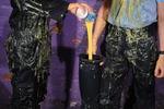 Once their outfits are completely drenched in mess they also see to each other's hair and faces for the finale.
