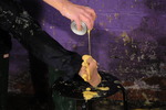 Identically dressed in blue denim boilersuits from alternative fashion house EMP, and pink wellies, Honeysuckle and Miss Abigail play Scissors Paper Stone, the winner gettin to pour some oil onto her opponent each turn. Pocket filling, suit filling, being made to sit in trays of oil, they take turn and turn about until they are both drenched in oil from head to toe.