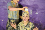 A lot of very messy fun and needless to say both girls end up utterly drenched and coated in custard, cream, and syrup, from head to toes by the end of it.
