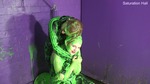 There's gunge-sitting, suit filling, pockets filling, slathering bright gunge all over each other, and of course full head and hair gunge shampooing too. By the end of the scene our two exercise girls are reduced to green gloopy messy misses, drendhed from head to to in gunge.