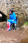 The reason there is some dampness on Maude's uniform before the pouring starts is that she helped to fill the buckets for her own drenching, and in the process almost fell in the river before we could start the process! We may possibly have to give her another bucketing for that in the future. :)