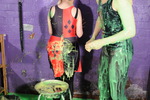 Once the dress-cutting is finished, Lucia and Teena notice that Felicity is still rather dry and clean, and also she has left their hair completely clean! This will never do. So they, still in their gunge-drenched underwear, set about her, and Felicity, and all three girls' haie, is soon reduced to soggy ruin too, though Felicity's dress stays intact.