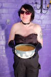 Her corset gets filled with milk and custard, and her entire outfit gets drenched in custard, milk, golden syrup, and fizzy lemonade.
