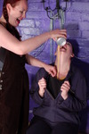 Before anyone can play freely in our dungeons, they are supposed to be initiated by a member of the household. Which is why Veronica and Eliza are to be found in the dungeon together wearing identical black and grey one piece swimsuits, while a clean pair of black corduroy dungarees for Eliza, and a clean navy blue boilersuit plus some nice black wellies for Veronica, await behind them.