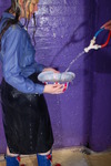 She gets totally drenched in gloop from her head to her toes.
