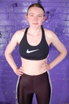 Chastity, dressed simply for pleasure in tight black and white "Capricio" branded spandex leggings, with no underwear, a Nike bra-top, and white deck shoes, has come to the dungeon to have some messy funtimes.