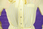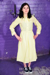 Maude, dressed for work in the estate shop in a bright yellow shopgirl uniform dress, worn with bare feet in trainers, and a swimsuit underneath, is going to get spectacularly messy!