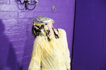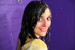 And once she's happy her swimsuit is completely messy, she slips her utterly mess-drenched yellow dress back on, before giving herself a final milk shampoo.