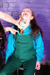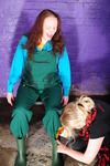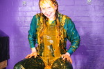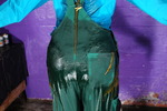 How much mess can we fit into Lady Amaranth's green dungarees and uniform shirt? This is the kind of question we like to answer here, and so Lady-A willingly volunteers for a spectacular savoury sliming, at Felicity's hands. She starts with beans. Lots and lots of beans, can after can tipped into the bib of her ladyship's green overalls. After a few pours, damp stains start to show between her legs as the bean sauce starts to soak through the fabric, but Felicity doesn't think it's really happening fast enough, so in go the cans of tomato soup to help spread the wetness!