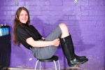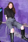 Chastity has an all-new workwear ensemble for working in the gardens, so of course it must be put to the messy test. Her outfit comprises a pair of long, quite baggy grey shorts, which come down to her knees, black wellies, and a black short-sleeve oversize shirt, tucked into the shorts.