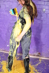 As well as the main messy scene you also get the hose-down wash-off, where Chastity has her outfit washed clean while she's still wearing it, then she strips down to the soaking wet one-piece black swimsuit she's wearing beneath it right at the end.