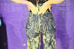 She starts the tests promptly, pouring entire cartons of custard into the front of her long shorts, nothing comes through but you can see the material twitching as the custard flows down inside each leg, and then it drops out at the knees and goes all over her boots. She turns round and pumps more custard in the back, again we can clearly see the material of her shorts moving and responding as the large dollops of custard flood down inside, and you can imageine how it feels as it flows over and around her bottom and down her legs, inside the shorts.