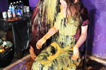 Back and forth the gungings continue until both women are utterly drenched in mess. There's some barefoot gunge action, and both girls also receive full messy shampoos and custard facials.