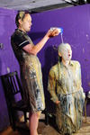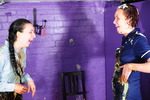 Veronica and Eliza cover each other's uniforms with food