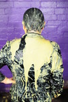 And of course her freshly styled jet black hair gets the full custard shampoo treatment too. Can't leave that clean!