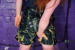 To finish off she poses, standing up and sitting down, in her completely gunge-soaked clothes and boots.