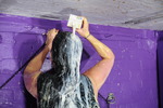 She gives herself a creamy facial and thoroughly messes up her beautiful thick black hair too.