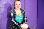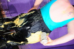Evelyne genuinely loves getting messy and you can see how much fun she's having as she completely subverts her waterproof outfit until she's completely drenched in mess from head to toe, she gives her hair and face the full treatment too.