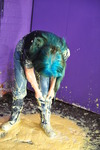 She sits and rolls on the floor and ends up totally mess-drenched from head to toe.