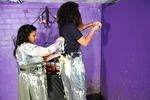 So, on starting, Friday immediately starts pouring cream into Teena's cleavage and down the front of her dress, even while Teena starts pouring cream into Friday's grey shorts.