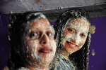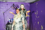 Usually, when we have two or more girls messing each other up, they'll take turn and turn about, the recipient passively accepting her messing, until the turns change, and she gets to get her own back, the other girl now passively accepting the next bit of her own messy fate. However, in a mutual messification session, things operate a little differently, and the two girls mess each other up at the same time, each ignoring what's being done to herself while she concentrates on what she is doing to her opponent.