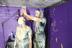 By the end of the scene they are both drenched in mess from head to toes, including fully messy faces and mess-shampooed hair.