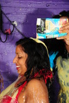 And let the swimsuit filling begin! All three girls get their water-wear comprhensively filled with cream and custard, and then totally covered on the outside too, along with the rest of their bodies, their faces, and their hair - very thorough messing with not a spot left uncovered. Swimsuits are of course meant to get wet, but how will they handle being totally messy inside and out too? Watch this scene to find out!