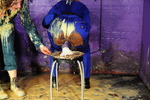 Rosemary wears a smart royal blue boilersuit with a black belt to pull it in at the waist, Rosemary wears a beautifully fitting green suit, both are by Dickies workwear. Rosemary teams hers with 3" heeled New Rock boots, while Maria wears transparent ankle boots and rolls her suit's trouser-legs up a little.