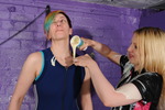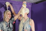 Lily stays clean and dry all thriugh the therapy session, but needless to say in this house that state of affairs cannot be allowed to continue, and so Lily takes her place in the centre of the dungeon, and allows the cream-drenched Felicity to well and truly get her own back. Lily's lovely unitard is soon filled and covered, and then with both of them well messed up, they take turns throwing even more Devon Dream all over each other, before taking turns to finally pour multiple full pots over each other's hair, until they are both coated from head to toe.