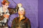 Steadily they tip more and more mess over each other, all the time enjoying the sensations as their outfits sucumb to the tide of soup, beans, custard and spaghetti. Heads aren't spared, Lily's technicolour locks, and Rosemary's lovely long red hair, get their own drenching and coating in goo, and both girls get messy facials too.