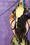 How do you power-dress for WAM? Here Rosemary presents one idea, dressed in a very plain black one-piece swimsuit, black rubber boots, and black rubber gloves, and taking some powerful stances, she exudes dominance. But also submission, as she's about to fill her swimsuit with mixed mess, and those same powerful stances mean that every moment of the mess oozing and seeping through her suit will be clearly visible, with nothing hidden.