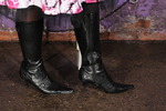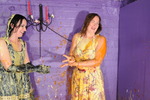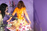 Maria, in a beautiful, brand new, white and pink 50s-style rockabilly dress, and Honeysuckle, in a very Gothic black and white dress, play scissors-paper-stone, with the winner getting to fill the loser's dress with mixed mess on each round. They have custard and soup to play with, and gradually reduce each other to messy ruin as the turns progress.