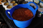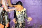 Eventually it is decided the punishment is completed, and the two of them go into a complete free-for-all with all the remaining mess, including Friday taking a turn in the seat with her boots in the tub of gloop - and then later on she empties the entire contents of the tub over Honeysuckle's front!