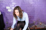 First, one at a time, she unlaces her shoes, fills them with mess, and slips them back on. Tomato soup fills the left shoe, and then custard fills the right, her clean tights-clad feet slidding deliciously into the well filled shoes and mess spraying out and all over her hands as she squelches her feet fully back into the shoes and neatly laces them up again.
