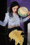 Using paper bowls variously filled with custard, squirty cream, and occasionally even rice pudding, they repeately splat each other in the face, over their hair, and pie sandwiches. Honeysuckle also has slices of gateaux mashed into her lovely long black hair, and as well as many pies, they also have two full buckets of transparent clear gunge, some of which gets used in pieings and the rest of which they pour over each other.