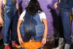 Maude wears long denim dungarees over a white t-shirt, and Converse boots, Teena is in denim shortalls over a white t-shirt, and blue and white stripey wellies, while Lucia is dressed in high waist dark denim blue jeans, white t-shirt, dark denim jacket, and sparkly wellies. And all three have agreed to submit to the ancient 'Savoury Sacrifice', where one of their number will get a bit messy, and then she gets to select who is next, until all the supplies are used and all three have been reduced to wet and sloppy savoury ruin.