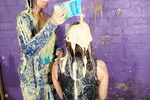 Needless to say both girls ended up totally drenched in mess from head to toe, boots filled and hair shampooed, and pretty faces covered in goo too. But you'll need to download the scene to find out who leaked first and fastest.
