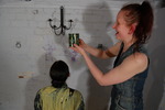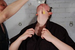 And now, with her entire outfit completely drenched in mess, it's shampoo time, and Chastity's hair succumbs to a steady tide of golden syrup.