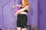 Dressed in just tight lycra running/cycling shorts and a Nike sports-bra top, and with no underwear, Rosemary first goes through a series of exercises designed to really show off her rather sexy workout clothes, and then she adds bright pink gunge to her routine. Feeling that her shorts are alltogether too dry against her skin, she pours pink gunge down inside he front, sighing with pleasure as the gloop flows down between her skin and the lycra. Loving the feelings as the wetness spreads, she wastes no time in pouring lots more gunge in while continuing to bend and stretch, and soon her shorts are utterly drenched in bright pink slime.