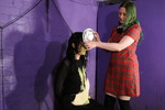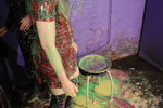 After a while the recitation of Pi is abandoned and Rosemary sets about destroying an all too willing Honeysuckle with yellow and pink gunge, including having her sit in trays full of goo and pouring streams of it inside her see-through top so we can watch it flow down within.