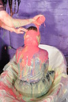 They carry on pouring more and more gunge all over each other, swapping places in the bath and also gunging each other while standing up. They give each other thorough gunge shampoos too, Felicity's blonde locks and Honeysuckle's raven hair both succumbing to the bright mess as it's poured on.