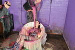 There's nothing quite like taking a lavish gunge bath while dressed in your working uniform, and it's even better when shared with a friend. And so Honeysuckle, dressed in a lovely dark blue nurses uniform dress, with dark tights and wellies, and Felicity, wearing a dark blue below-the-knee skirt, blue and white check shirt, and wellies, meet up in the dungeon and proceed to make each other very, very messy with lashings of multi-coloured gunge!