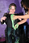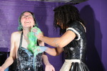 Of course here at Saturation Hall fairness is everything - so Friday in her lovely latex dress soon gets well and truly messed up too. Later on in the scene Cindy has so much gunge poured into her swimsuit that her pants start to fall down, she removes them and continues in just the swimsuit, her mesh dress having come off some time earlier.