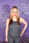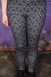 Felicity and Lily are both dressed in skin-tight running gear, Lily is all in black, including shiny black leggings with mesh panels on her legs, while Felicity's outfit has a lovely geometric pattern on her top and the fronts of her leggings, with plain black behind. They both wear plain black Converse style basketball boots.