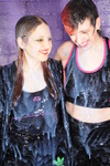 Once they are both completely drenched in goo they pose for the camera, and then move to the wash-off, first they empty full buckets of water over each other, and then hose each other down, still fully dressed. They finish with Lily in yoga pants and crop top, and Felicity in swimsuit and jogging pants, all utterly soaking wet.